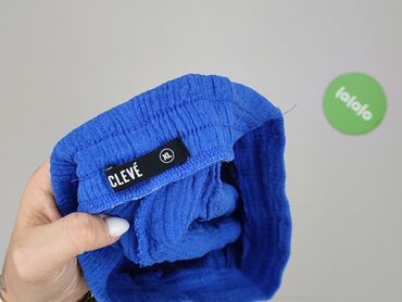 Szorty damskie jeansowe CLEVÉ - Rozmiar: XL (z metki) - Fason: paperbag/high waist – wysoki stan z marszczoną gumą w pasie - Zapięcie: podwójny guzik + zamek - Kieszenie: 2 skośne z przodu, 2 nasz...
