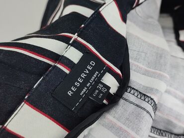 Szorty damskie Reserved YFL - Model: krótkie spodenki w pionowe paski - Kolor: biało‑niebieski - Rozmiar z metki: EU 38 (UK 10) - Krój: wysoki stan z delikatną falbanką przy pasie - Zapięcie/konst...
