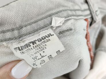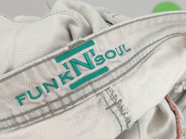 Szorty damskie Funk N’Soul, rozmiar M. - Kolor: jasnoszary w drobny prążek - Krój: średni stan, nogawki przed kolano - Zapięcie: zamek błyskawiczny i guzik - Szlufki na pasek (podwójne, dekoracyjn...Szorty damskie Funk’n’Soul