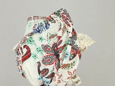 Szorty damskie mbym – rozmiar XS - Kolor: ecru/kremowy z czarnym, roślinnym nadrukiem w duże kwiaty i liście - Krój: luźny, lekko zaokrąglone nogawki z krótszym bokiem; przód z zaszewkami, z tyłu ...