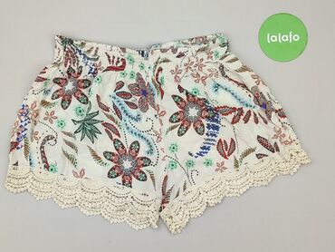 Krótkie szorty damskie DIVIDED (H&M) - Rozmiar: EU 38 / US 8 / CA 8 / MX 8 / CN 165/72A - Kolor bazowy: jasny, pastelowy beż/brzoskwinia - Wzór: drobne kwiaty i listki w odcieniach granatu i różu ...