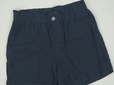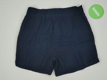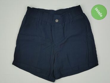 Szorty damskie House Collection - Rozmiar: XS (z metki) - Kolor: granatowy w delikatne, pionowe prążki - Fason: paper bag z wysokim stanem - Pas: elastyczna gumka + materiałowy pasek do wiązania z...