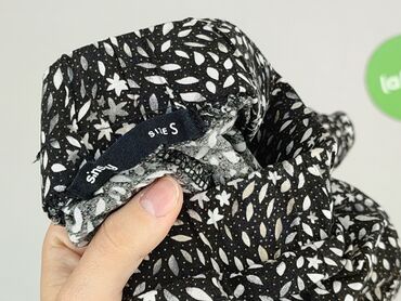 Szorty damskie Sinsay - Rozmiar: S (widoczny na metce) - Kolor: czarny z białym geometrycznym wzorem (romby) - Krój: luźne, krótkie, z wysoką talią i szeroką gumką w pasie - Materiał: lekki, cienk...