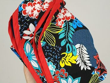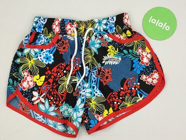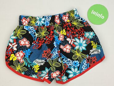 Damskie szorty sportowe z kolorowym, geometrycznym nadrukiem. - Rozmiar: S (metka) - Materiał: 100% poliester - Pas: szeroka, elastyczna guma + troczek do regulacji - Krój: krótkie nogawki z zaokr...