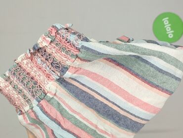 - Krój: krótkie, luźne szorty z marszczoną, elastyczną talią (smocking) i wiązaniem z przodu
