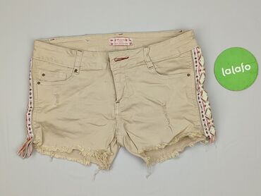 Damskie szorty beżowe - Kolor: jasny beż/taupe - Rozmiar z metki: M - Skład: 95% bawełna, 5% elastan – miękki, lekko elastyczny materiał - Krój: krótkie, z podwiniętymi nogawkami - Zapięcie: guzik...