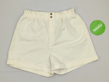 Szorty damskie w kolorze ecru/kremowym. - Krój: luźny, z wysokim stanem typu paperbag - Pasek: szeroka, marszczona talia z gumką + szlufki (możliwość dodania paska) - Zapięcie: przód imitujący roz...