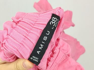 Różowe szorty damskie AMISU - Rozmiar: EU 36 (US/CA 4) - Krój: wysoki stan z zakładkami z przodu, lekko luźna nogawka - Pasek: w zestawie szeroki pasek w tym samym kolorze i materiałe, z prostokąt...Stan: