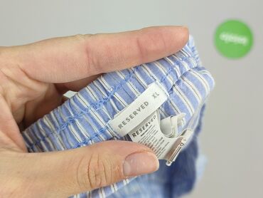 Szorty damskie Reserved - Model: w paski, biało-niebieskie - Fason: wysoki stan z marszczoną talią i szerokim, wiązanym paskiem; nogawki luźne - Zapięcie: suwak z boku - Skład materiału: 71% baweł...