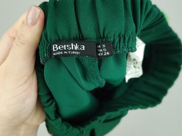 Szorty damskie Bershka - Kolor: oliwkowy/khaki z delikatną fakturą materiału - Krój: wysoki stan, nogawki z podwinięciem - Zapięcie: rząd ozdobnych guzików z przodu - Talia: elastyczna z tyłu oraz...