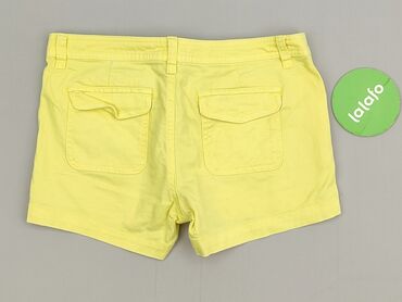 Żółte szorty damskie - Kolor: jasny żółty - Krój: klasyczne szorty z lekko dłuższą nogawką - Zapięcie: suwak + dwa guziki z przodu - Pas: szlufki na pasek - Kieszenie: 2 kieszenie z przodu, 2 kies...