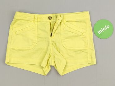 Szorty damskie Primark - Kolor: pastelowy żółty/waniliowy - Krój: wysoki stan z elastyczną, marszczoną talią; szlufki na pasek; krótkie nogawki z małymi rozcięciami po bokach - Zapięcie: guzik z p...