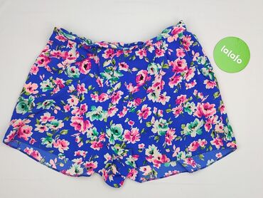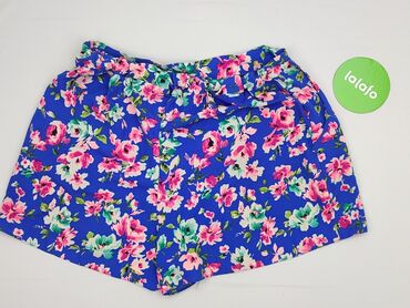 Krótkie spodenki damskie L/XL – 100% bawełna - Materiał: 100% cotton (metka widoczna na zdjęciu) - Rozmiar: L/XL - Wzór: biało-niebieskie pionowe paski z dużymi kwiatami w odcieniach różu i bordo ...