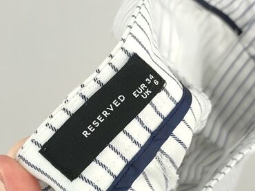 Szorty damskie Reserved - Model: eleganckie szorty w pionowe paski - Kolor: biel z granatowymi/ciemnymi paskami (również delikatny wzór łańcuszkowy) - Rozmiar z metki: EUR 34 (UK 6) - Skład materi...