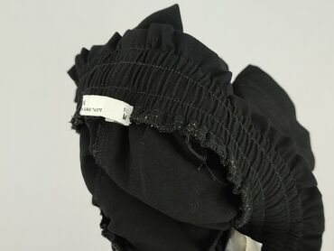 Czarne szorty HUSE, rozmiar M - Krój: luźne, z delikatnie zaokrąglonymi rozcięciami po bokach - Pas: szeroka, marszczona guma + wiązanie na troczki dla lepszego dopasowania - Kieszenie: dwie boczn...