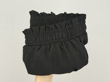 Czarne szorty damskie - Krój: luźny, lekko rozkloszowany; przód z zakładkami - Stan: wysoki - Pasek: elastyczny z tyłu, gładki z przodu – wygodne dopasowanie bez zapięcia - Długość: krótkie - Kolo...