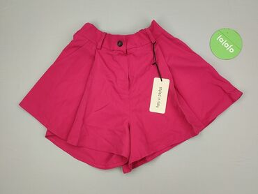 Szorty damskie w intensywnym różowym kolorze z jasnoróżowym lampasem po bokach. Najważniejsze informacje: - Krój: wysoki stan, zakładki z przodu, nogawki z podwiniętym dołem - Pas: szeroki, z szlu...