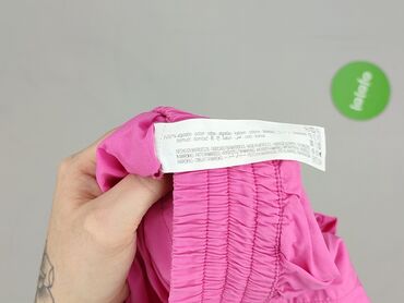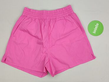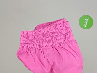 Szorty damskie Bershka - Kolor: pudrowy róż - Materiał: 100% poliester (lekko lejący, gładki) - Pas: elastyczna gumka z tyłu, szlufki na pasek - Krój: wysoki stan, lekko rozszerzana nogawka - Deta...