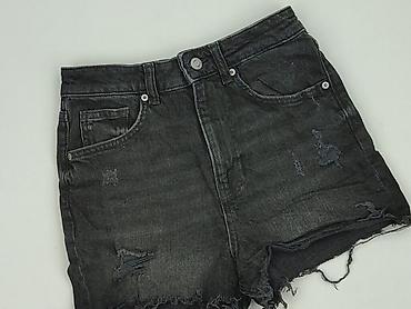 Czarne jeansowe szorty damskie Sinsay Denim Collection - Rozmiar z metki: 36 - Krój: bardzo krótkie, z wysokim stanem wizualnie podkreślonym podwójnym zapięciem z przodu (dwa guziki + zamek) - Mat...