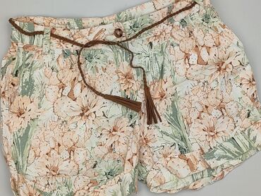 Krótkie spodenki damskie Esmara - Wzór: tropikalny, roślinny (odcienie beżu, brzoskwini i zieleni), podwijane nogawki - Zapięcie: guzik i zamek błyskawiczny z przodu - Kieszenie: 2 skośne z przodu...Szorty damskie Esmara, rozmiar EU 36 (FR 38, IT 38, GB 10).