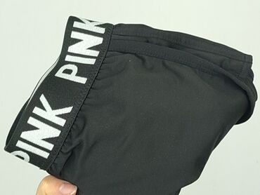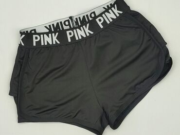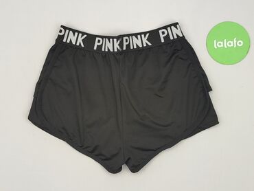 Damskie spodenki sportowe typu short - Kolor: czarny z intensywnie różowym, szerokim pasem - Rozmiar: M (oznaczenie wewnątrz) - Materiał: 90% poliester, 10% spandex – elastyczne, szybkoschnące i o...