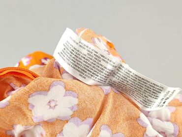 - Wzór: kwiatowy, retro; tło w intensywnym pomarańczowym kolorze, kwiaty białe z różowo‑fioletowymi akcentami