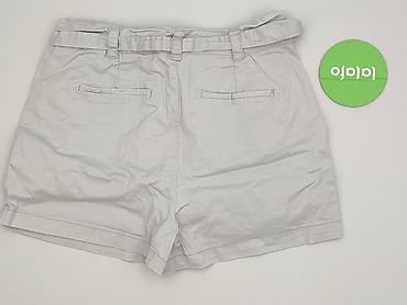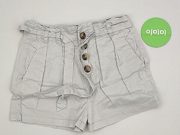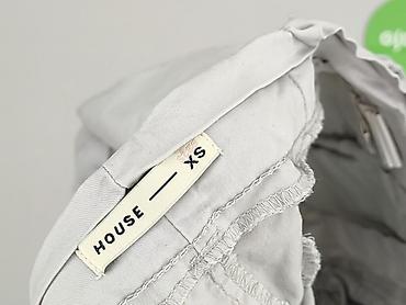 Szorty damskie HOUSE, rozmiar XS - Kolor: jasnoszary w białe, pionowe prążki - Fason: paperbag z wysokim stanem - Pasek z tego samego materiału do wiązania + szlufki - Elastyczna, marszczona gumka...