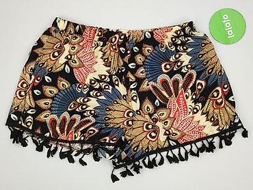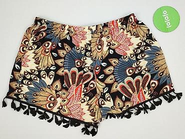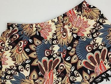 Szorty damskie z lekkiego materiału, wzór boho/paisley. - Rozmiar: M (na metce) - Skład: 100% poliester - Talia: szeroki, marszczony pas na gumce z wiązaniem z przodu - Krój: luźny, bardzo zwiewny...