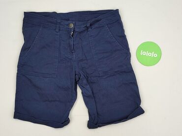 Szorty damskie, granatowe, rozmiar S. - Fason: krótkie szorty z szerokim, efektownie przeszywanym pasem i podwiniętą nogawką - Zapięcie: zamek z tyłu - Kieszenie: 2 przednie - Materiał: 71% bawełn...