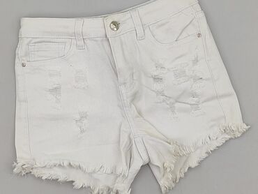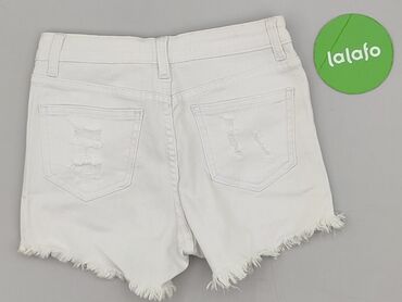 Białe szorty jeansowe HELLO MISS - Model: krótkie jeansowe szorty z wysokim stanem - Kolor: biały - Rozmiar z metki: 36 / S - Fason: dopasowany, nogawki bardzo krótkie z postrzępionym dołem - Deta...