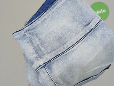Krótkie spodenki jeansowe damskie Esmara - Krój: high waist (wysoki stan) - Kolor: jasny denim z delikatnymi przetarciami z przodu i na kieszeniach z tyłu - Zapięcie: suwak + metalowy guzik - Kies...