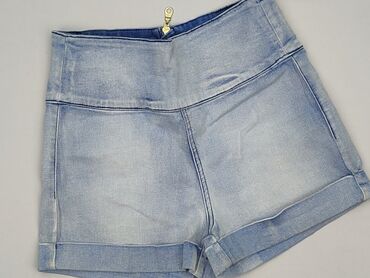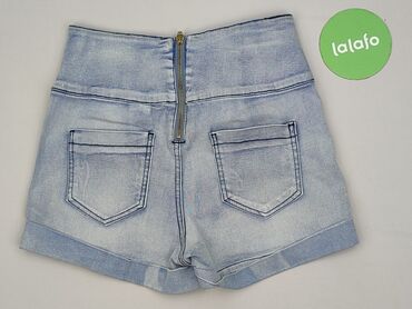 Damskie szorty jeansowe – wysoki stan - Fason: krótkie szorty z wysokim stanem (high waist) - Kolor: klasyczny jasny/średni niebieski denim - Zapięcie: suwak + metalowy guzik - Kieszenie: 5 kiesze...