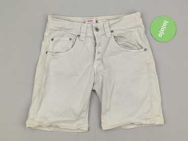 Szorty damskie H&M - Rozmiar: EU 36 (US/CA 6, CN 165/68A) - Skład materiału: 66% bawełna, 30% poliester, 4% elastan - Kolor i wzór: drobne szaro-białe prążki (paski) - Krój: eleganckie, krótsze no...
