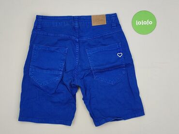 Szorty jeansowe CLEVE – rozmiar S - Kolor: jasny niebieski (denim) - Fason: paperbag z wysokim stanem, marszczona talia z tunelowym ściągaczem i szlufkami - Zapięcie: guzik + zamek - Kieszenie: 2 ...