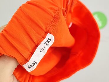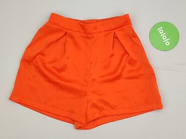 Szorty damskie Sinsay, rozmiar XS - Fason: luźne, krótkie, z lekko marszczoną gumką w pasie - Wzór: abstrakcyjny/organiczny, pomarańczowe motywy na fioletowym tle - Materiał: lekki, cienki, przyje...