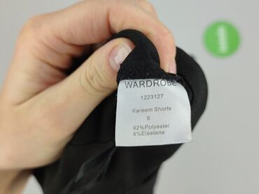 Czarne damskie szorty garniturowe BIK BOK „SARA” - Rozmiar: S (na metce) - Krój: klasyczne, krótkie szorty z zakładkami z przodu - Talia: szlufki na pasek, zapięcie na guzik i suwak - Kieszenie: 2...Stan: