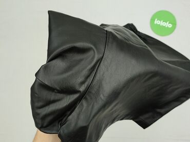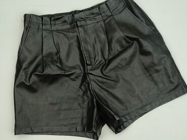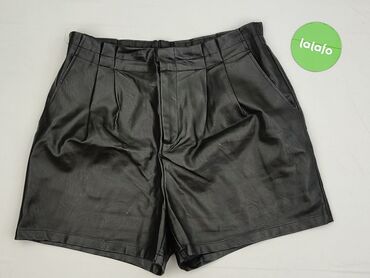 Czarne szorty z ekoskóry - Krój: luźne, z prostą nogawką przed kolano - Pas: wysoki, szeroka guma z marszczeniem zapewniająca wygodne dopasowanie - Kieszenie: dwie boczne, skośne - Materiał: 95% P...