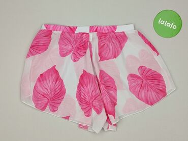 Szorty damskie Sinsay - Rozmiar: XS - Skład materiału: 100% wiskoza (metka na zdjęciu) - Wzór: tropikalne liście w odcieniach różu, żółci, zieleni i beżu - Kolor bazowy: pudrowy róż - Krój: luźne,...