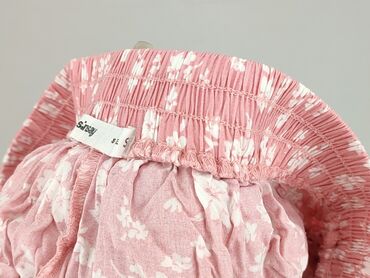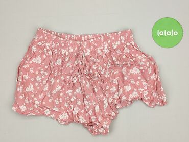 Szorty damskie Clockhouse (C&A) - Rozmiar: 40 - Wzór: drobne kwiaty w odcieniach różu i czerwieni na jasnoróżowym tle - Fason: rozkloszowane, z zakładkami z przodu – wyglądają jak spódniczka (skor...