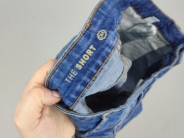 Krótkie spodenki jeansowe damskie Esmara - Krój: high waist (wysoki stan) - Kolor: jasny denim z delikatnymi przetarciami z przodu i na kieszeniach z tyłu - Zapięcie: suwak + metalowy guzik - Kies...
