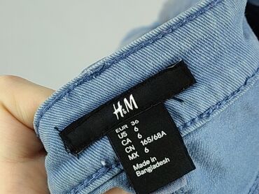 Szorty jeansowe damskie H&M - Model: klasyczne krótkie denimowe szorty z podwiniętymi nogawkami - Kolor: jasny, sprany błękit - Rozmiar z metki: EU 36 (US/CA 6, MX 6, CN 165/68A) - Krój: średni st...Szorty jeansowe H&M