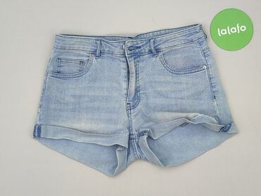 Damskie szorty jeansowe H&M - Fason: klasyczne denimowe szorty z podwiniętą nogawką - Kolor: średni niebieski (wash z delikatnym cieniowaniem) - Zapięcie: guzik i zamek, szlufki na pasek - Kieszen...
