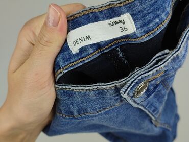 Jeansowe szorty Sinsay - Model: DENIM - Rozmiar z metki: 36 - Skład: 100% bawełna - Kolor: jasny niebieski, delikatnie sprany - Krój: wysoki stan, klasyczne zapięcie na guzik i zamek, szlufki na p...