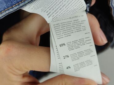 - Skład tkaniny (1st fabric): 69% bawełna, 27% poliester, 4% elastan – miękki denim z lekką elastycznością dla wygody
