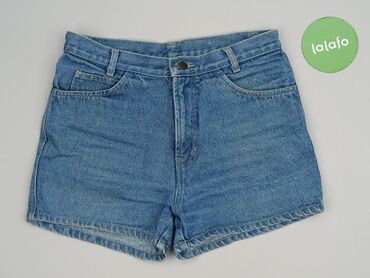 Damskie szorty jeansowe - Materiał: denim w klasycznym, średnio-niebieskim odcieniu z delikatnymi przetarciami z przodu - Krój: krótkie szorty z postrzępioną krawędzią nogawek (raw hem) - Zapięcie...