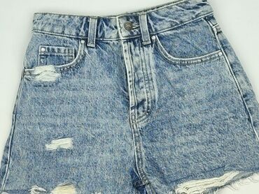 Szorty jeansowe ZARA – damskie - Model: denimowe szorty z przetarciami i postrzępioną, surową krawędzią nogawek - Krój: wysoki stan, dopasowane w talii, krótsze nogawki - Zapięcie: suwak i guzik, ...