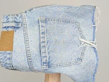 Szorty jeansowe damskie Stradivarius - Model: Denim Short - Kolor: bardzo jasny, sprany błękit (light wash) - Krój: wysoki stan, krótkie nogawki - Wykończenie: strzępione, długie frędzle na dole -...