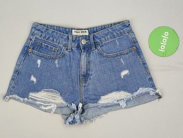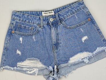 Jeansowe szorty Tally Weijl - Model: damskie szorty z przetarciami i dziurami (distressed) - Kolor: jasny, sprany niebieski denim - Krój: bardzo krótki, z postrzępionym dołem - Zapięcie: guzik + z...