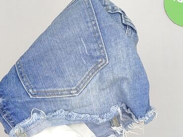 Jeansowe szorty damskie, rozmiar S. - Krój z wysokim stanem - Kolor: jasny denim z delikatnymi przetarciami - Zapięcie: suwak + metalowy guzik - Szlufki na pasek - Przód: 2 klasyczne kieszenie + m...Stan: