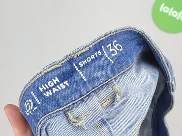 Sinsay – jeansowe szorty damskie - Rozmiar: 36 (z metki) - Materiał: denim/bawełna (klasyczny, grubszy jeans) - Kolor: jasny niebieski, sprany efekt - Krój: wysoki stan, krótka nogawka - Wykończen...